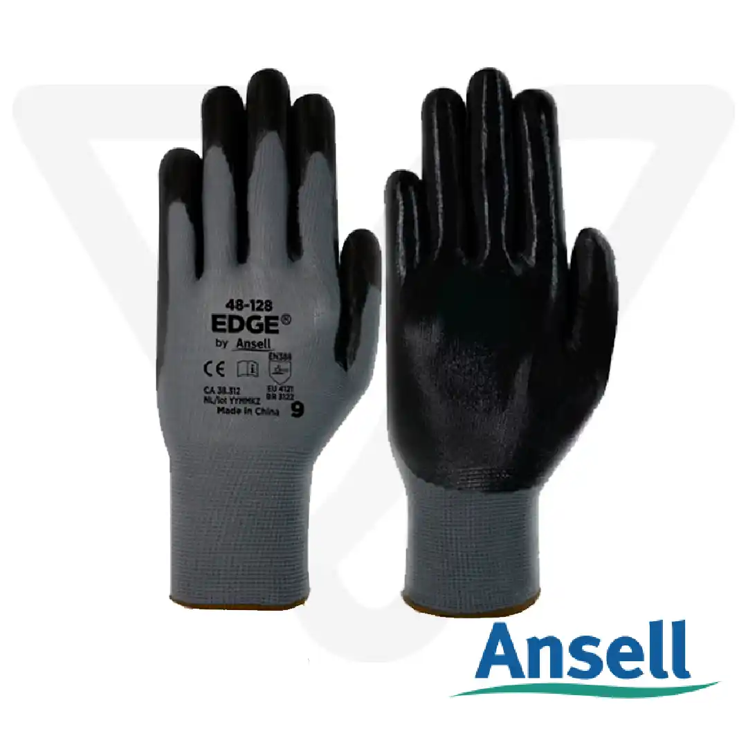 El Guante EDGE 48-128 de Ansell está diseñado para aplicaciones industriales ligeras donde se requiere alta destreza, durabilidad y buen agarre en presencia de aceite. Su forro ligero de poliéster sin costuras brinda flexibilidad y comodidad, mientras que el recubrimiento de nitrilo negro mejora la resistencia a la abrasión y prolonga la vida útil del guante.